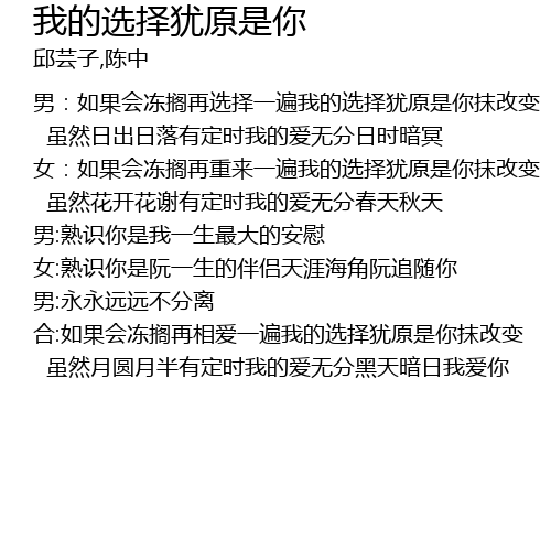 | 男:如果会冻搁再选择一遍我的选择犹原是你抹改变 | |