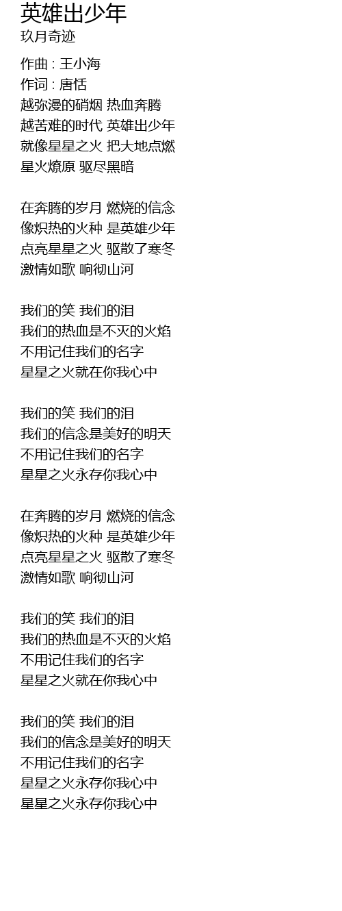 | xīng xīng zhī huǒ jiù zài nǐ wǒ xīn zhōng | |