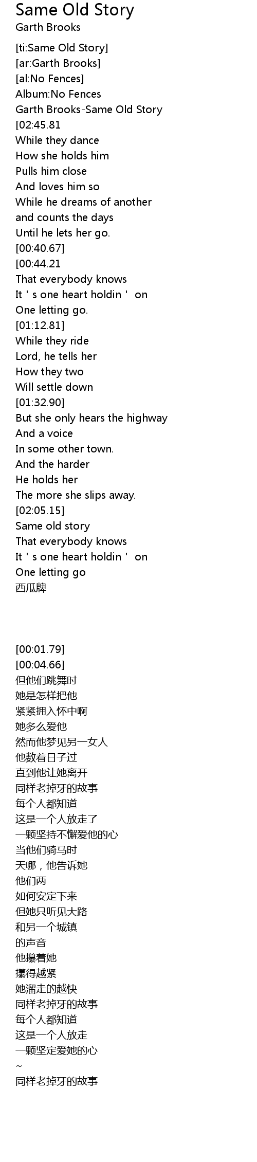 | [00:01.79] | Garth Brooks-Same Old Story |
