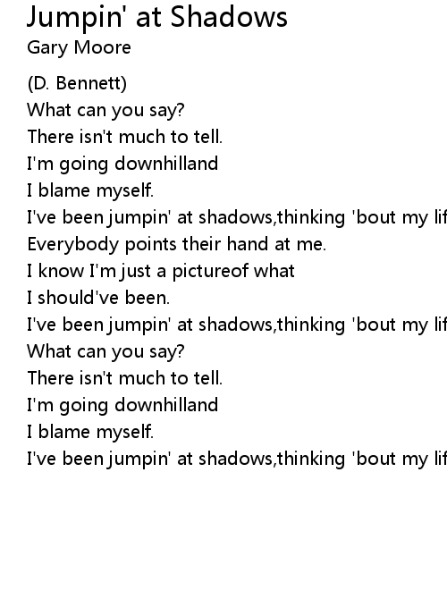 | I've been jumpin' at shadows,thinking 'bout my life. |