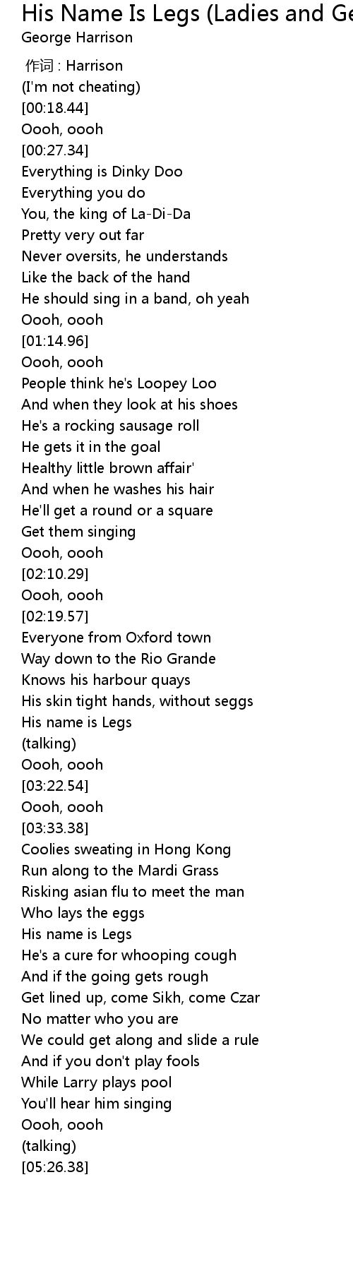 | Song | His Name Is Legs (Ladies and Gentlemen) |
