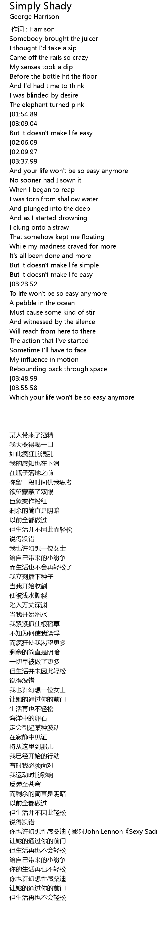 | [00:44.51][01:54.89][03:04.85] | And the rest is simply shady |