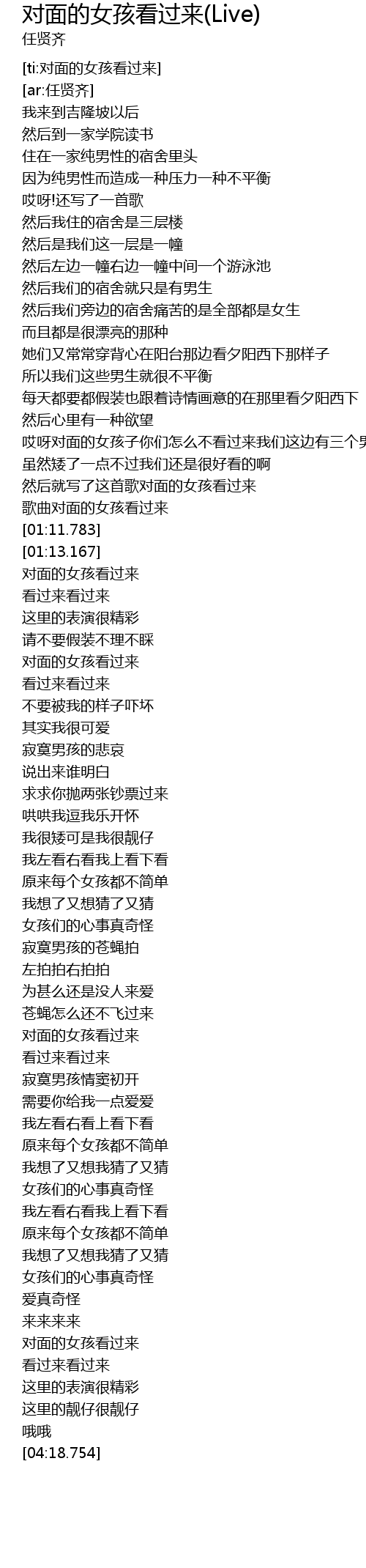 | [01:08.110] | 歌曲对面的女孩看过来 |