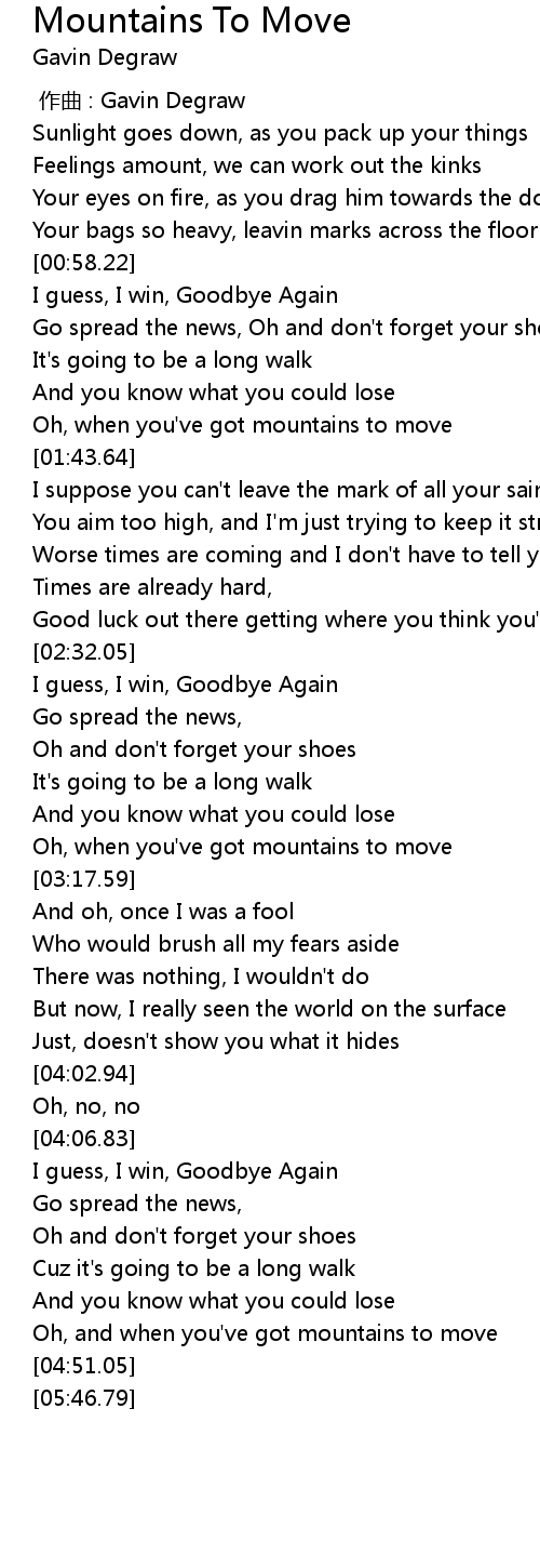 | [01:35.46] | Oh, when you've got mountains to move |