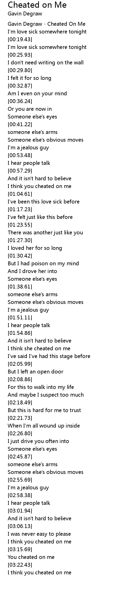 Gavin Degraw - Cheated On Me |