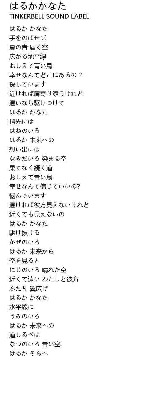 | [04:03.39] | 近くて遠い わたしと彼方 |