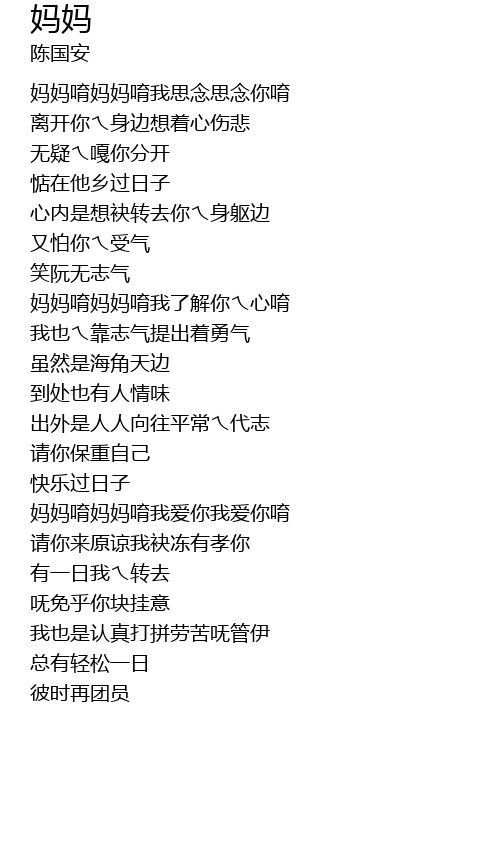 | 妈妈唷妈妈唷我了解你ㄟ心唷 | |