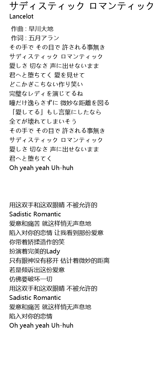 | [00:14.65] | サディスティック ロマンティック |