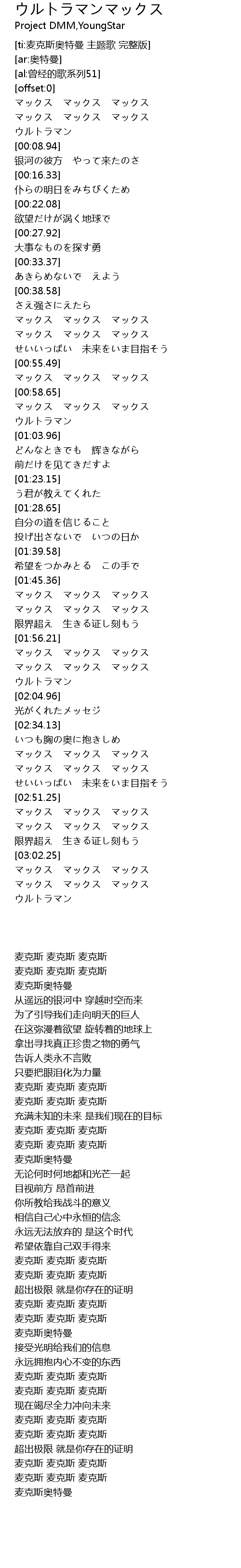 | [02:00.15] | マックス マックス マックス |