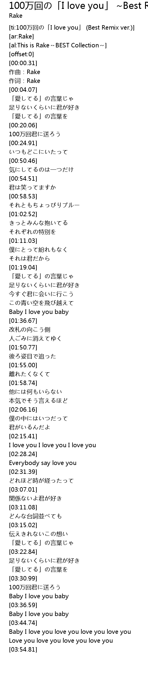 | [ti:100万回の「I love you」 (Best Remix ver.)] | |