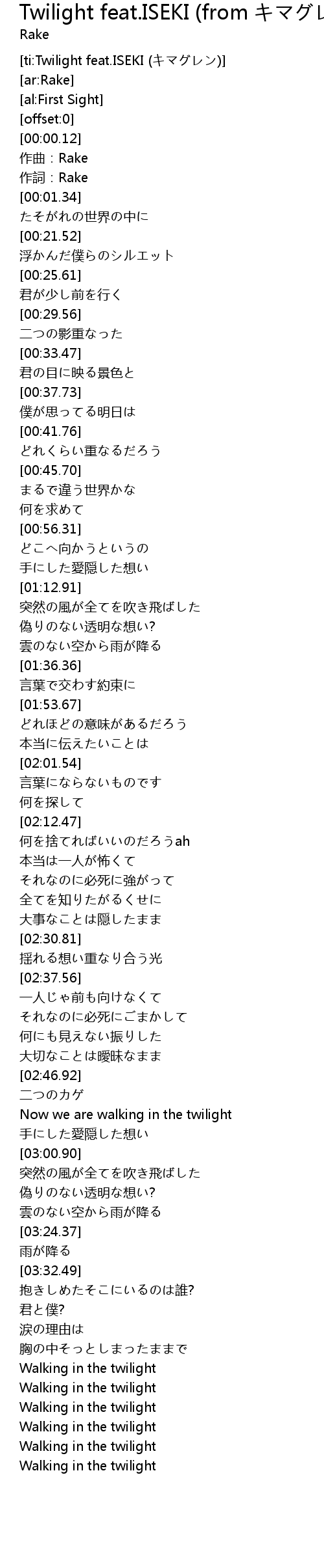 | [ti:Twilight feat.ISEKI (キマグレン)] | |