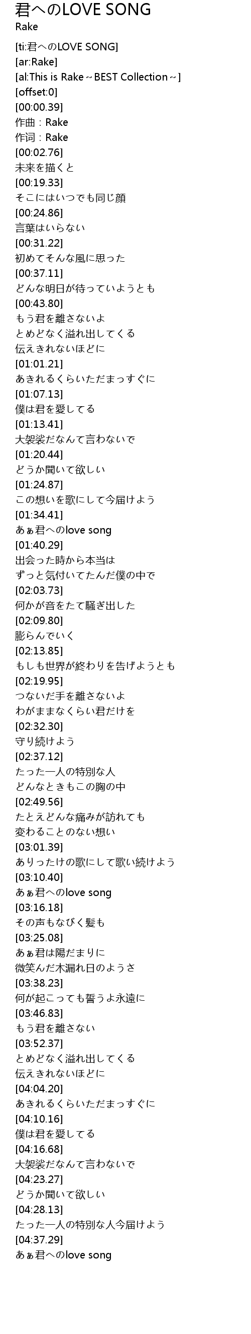 | [ti:君へのLOVE SONG] | |