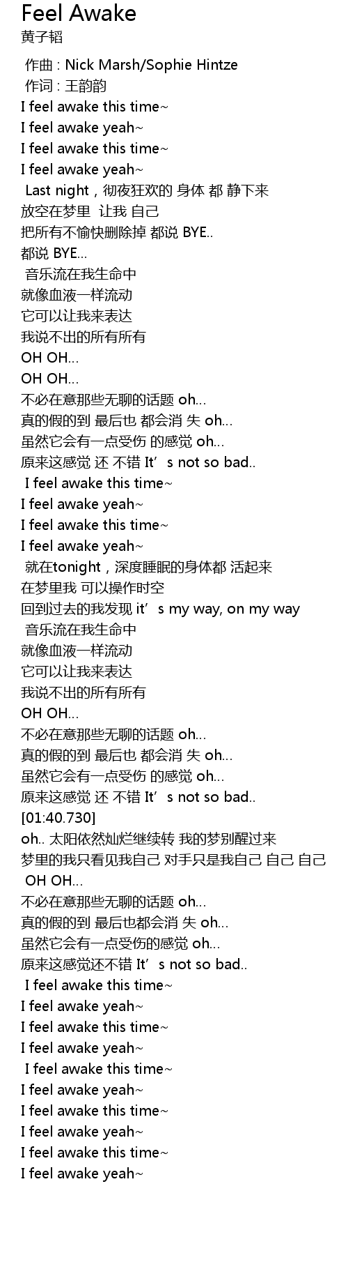 | [00:02.810] | I feel awake yeah |