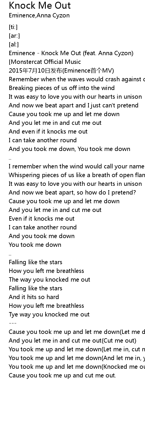 | [00:00.46] | Eminence - Knock Me Out (feat. Anna Cyzon) |