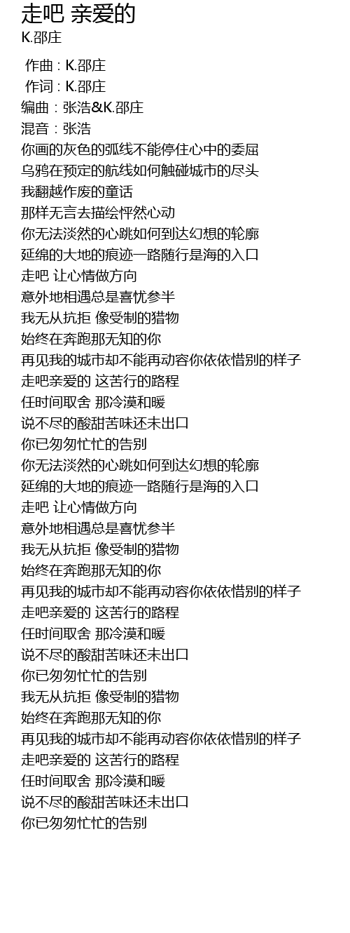 | [00:05.490] | 编曲:张浩&K.邵庄 |