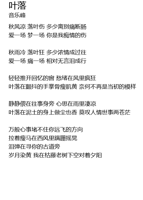 | 秋风凉 落叶伤 多少离别痛断肠 | |