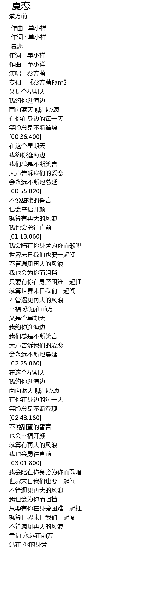| [00:13.700] | 专辑:《蔡方萌Fam》 |