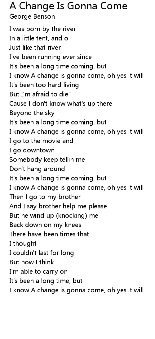 I know A change is gonna come, oh yes it will |