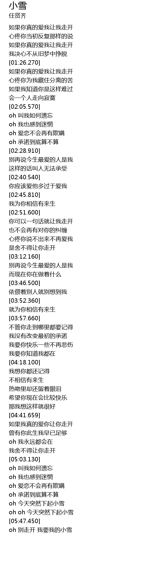| [05:48.700] | oh 别走开 我要我的小雪 |