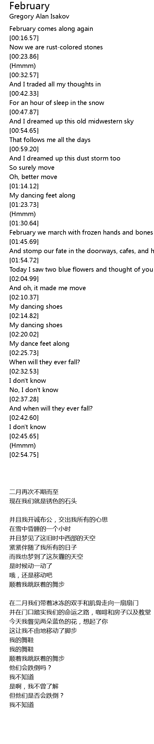 [01:47.81] And stomp our fate in the doorways, cafes, and houses and churches