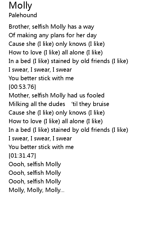 | [00:58.57] | Mother, selfish Molly had us fooled |