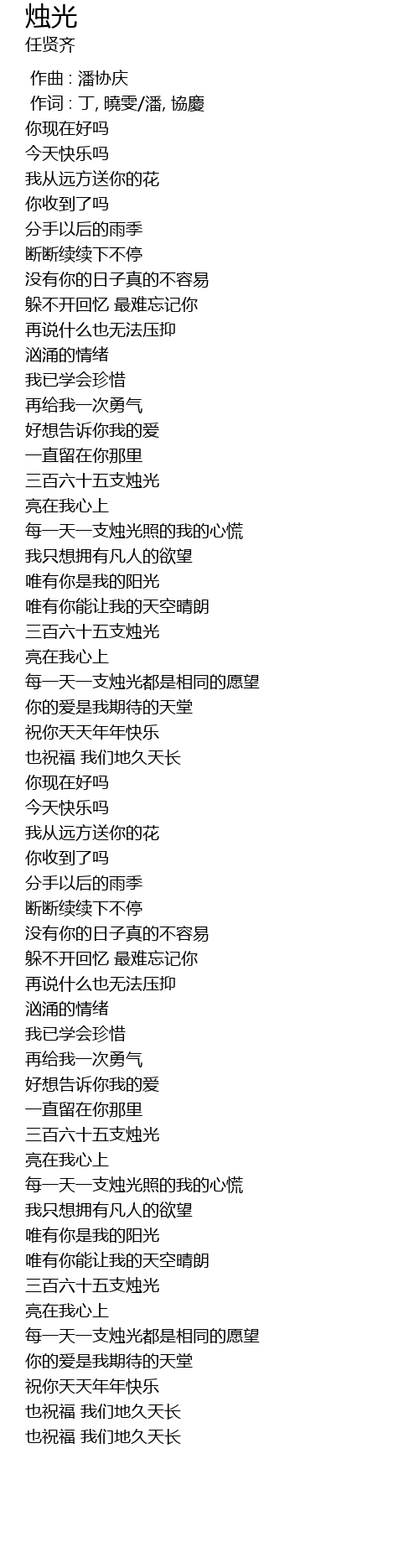 | [01:29.58] | 每一天一支烛光都是相同的愿望 |