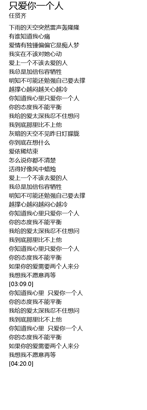 | [03:50.0] | 你知道我心里 只爱你一个人 |