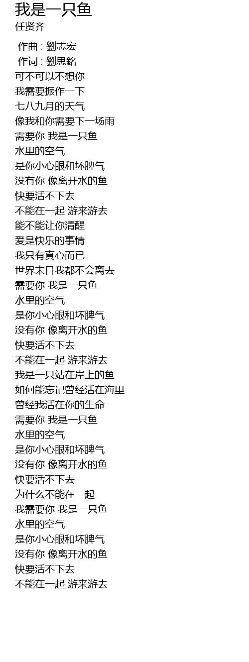 | [02:47.800] | 我需要你 我是一只鱼 |