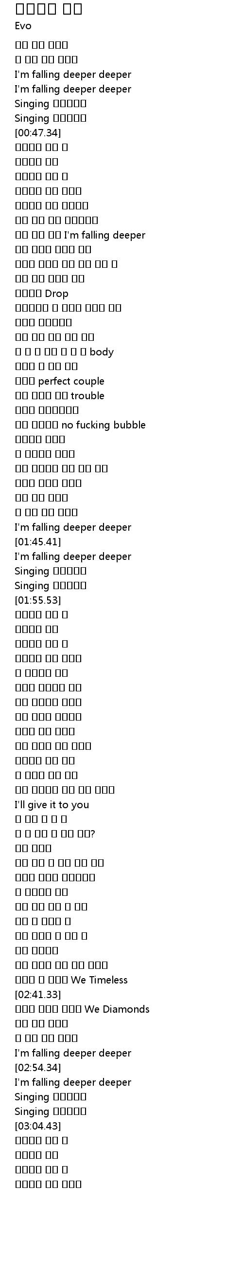 | [00:58.74] | 너의 속은 깊어 I'm falling deeper |