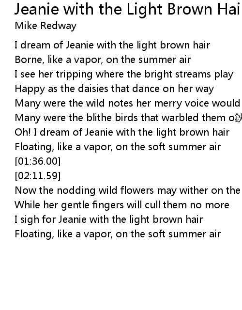 | [02:38.21] | I sigh for Jeanie with the light brown hair |