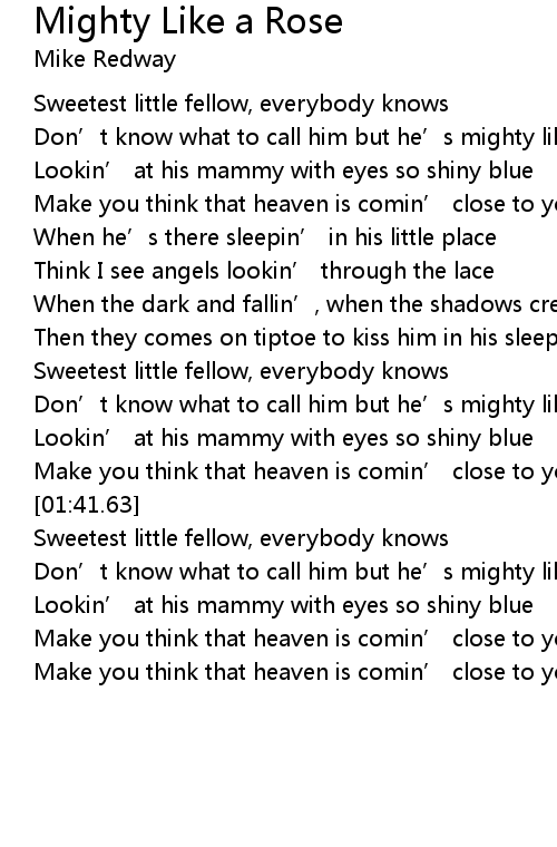 | [01:19.22] | Don' t know what to call him but he' s mighty like a rose |