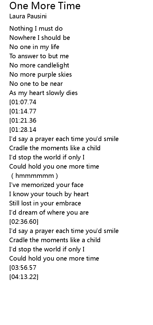 | [03:01.25][01:07.74] | If I could hold you one more time |