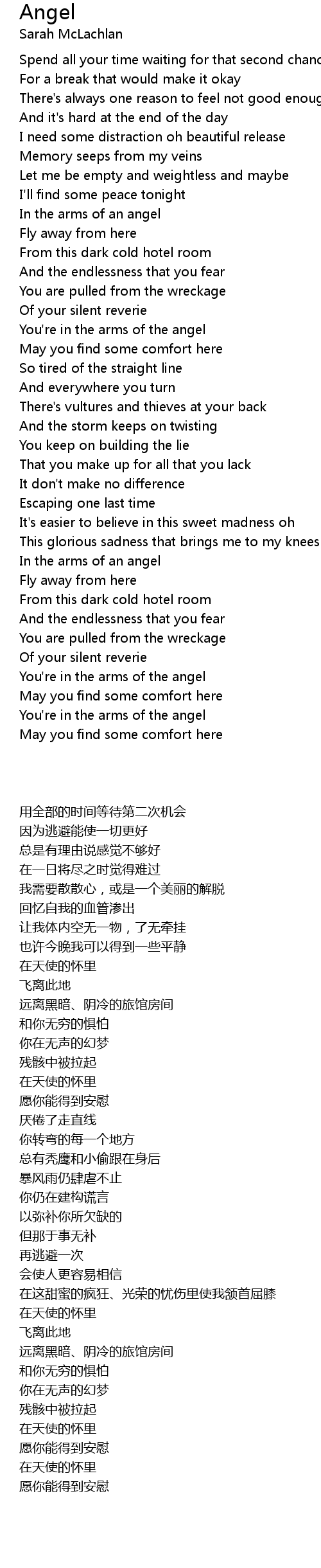 You're in the arms of the angel |