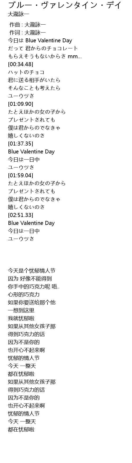 | [00:00.40] | jīn rì Blue Valentine Day |