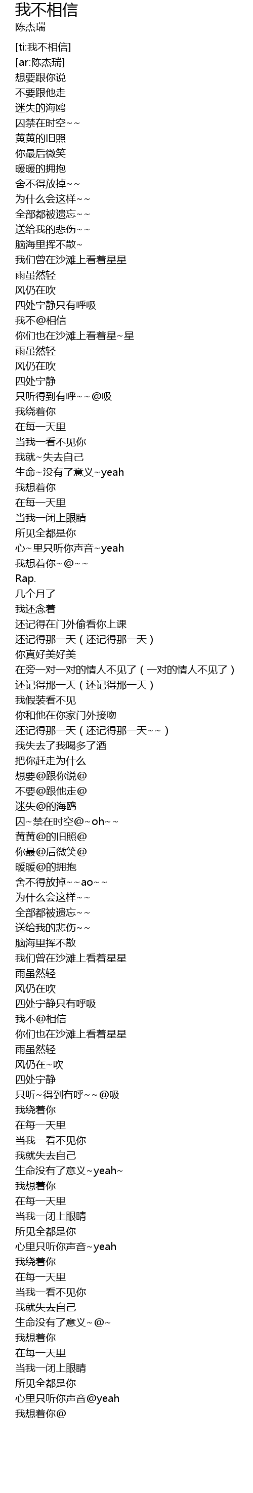| [04:02.36] | xīn lǐ zhǐ tīng nǐ shēng yīn yeah |