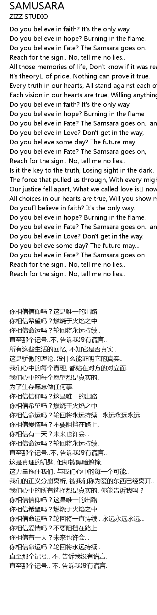 | [03:10.20] | Do you believe in Fate? The Samsara goes on.. |