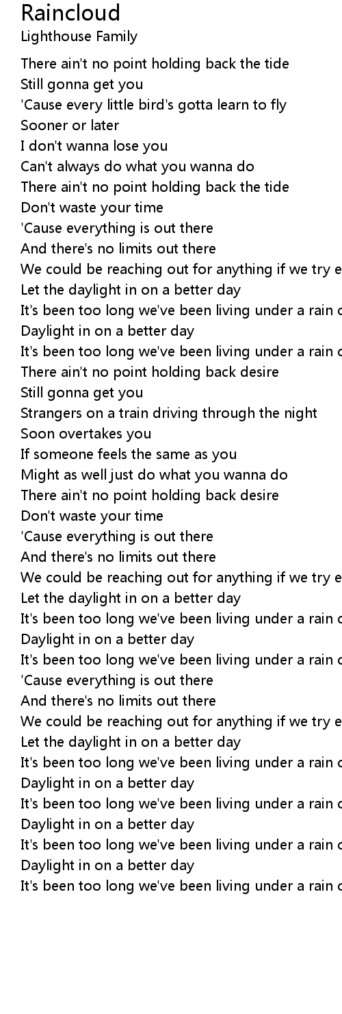 It's been too long we've been living under a rain cloud |