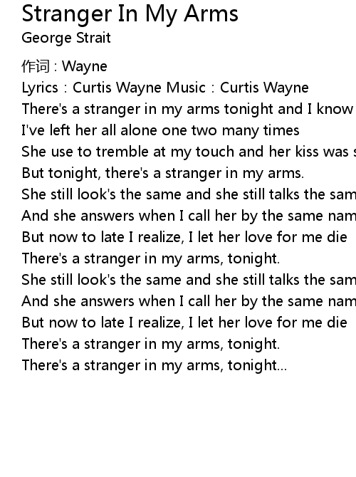| There' s a stranger in my arms tonight and I know the reason why | |