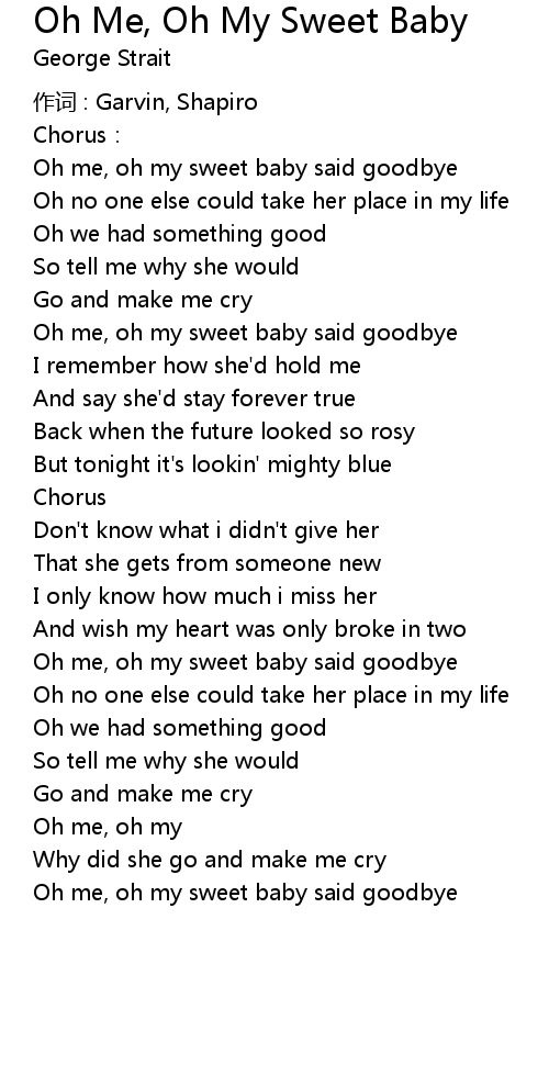| Oh me, oh my sweet baby said goodbye | |