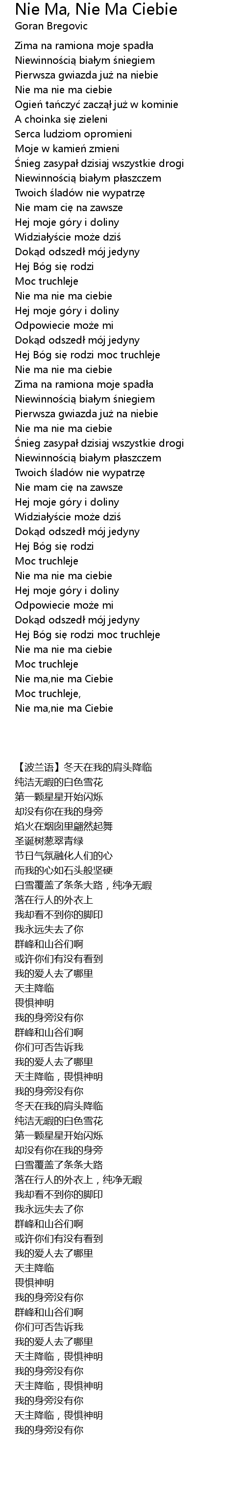 | [03:40.90] | Nie ma, nie ma Ciebie |