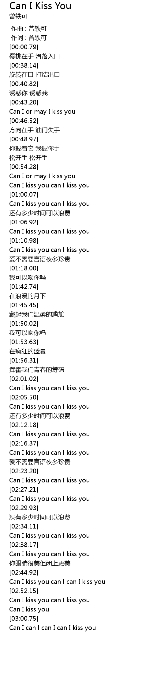 | [01:52.00] | wǒ kě yǐ wěn nǐ ma |