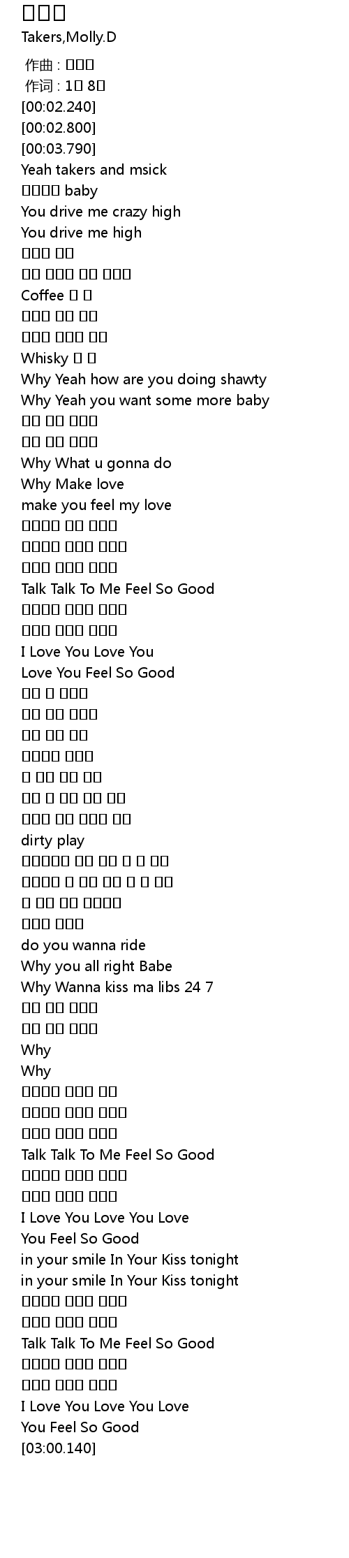 | [01:05.560] | Talk Talk To Me Feel So Good |