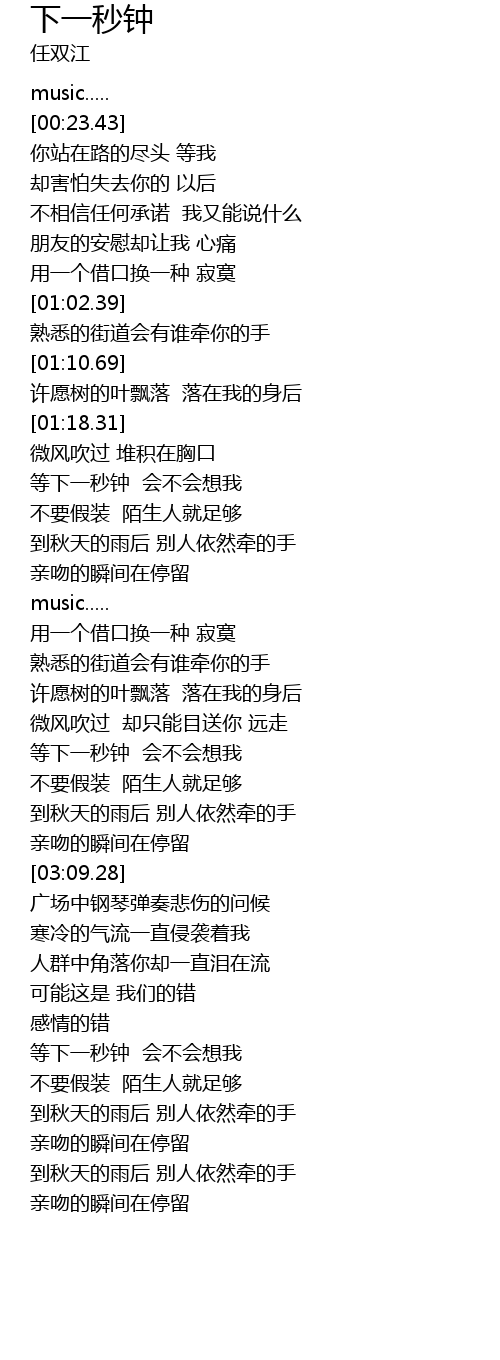 | [02:39.35] | 等下一秒钟 会不会想我 |