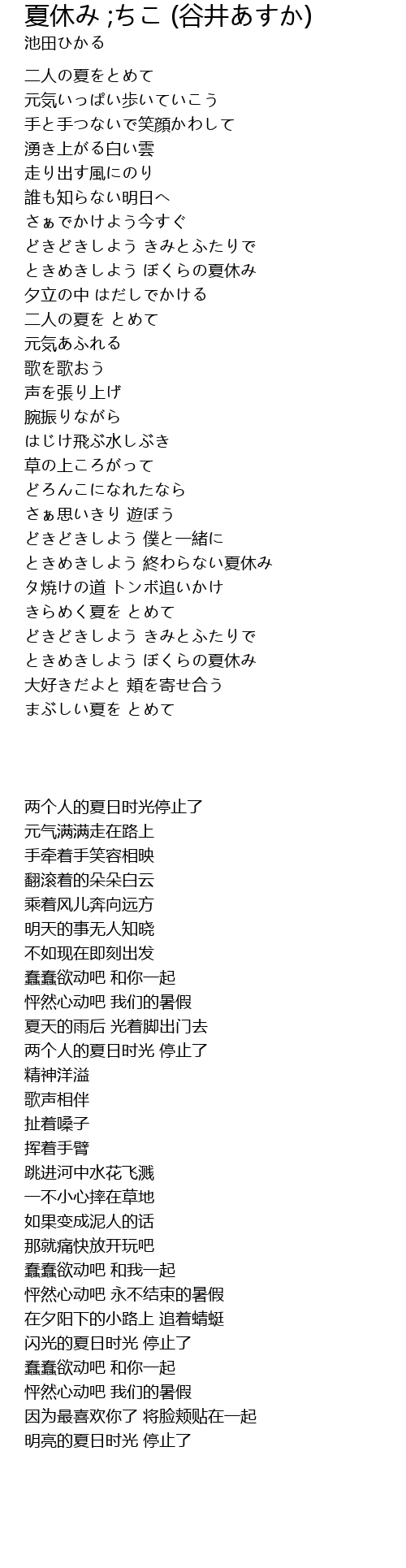 | Song | 夏休み ;ちこ (谷井あすか) |