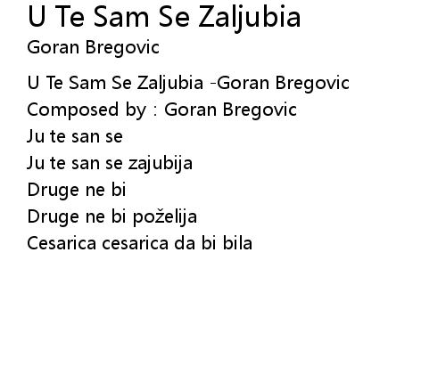 | [00:00.74] | U Te Sam Se Zaljubia -Goran Bregovic |