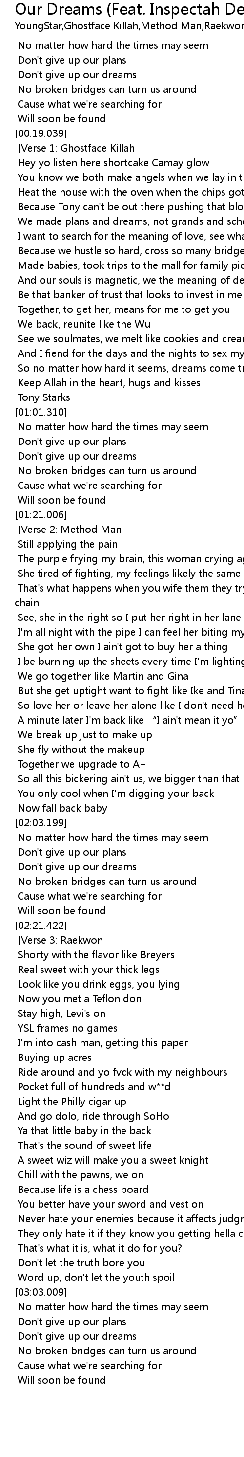 | Song | Our Dreams (Feat. Inspectah Deck, Sun God) |