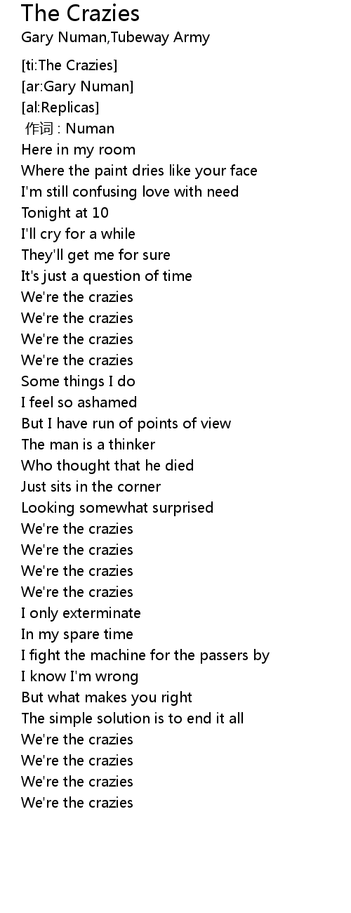 | [00:45.34] | We're the crazies |
