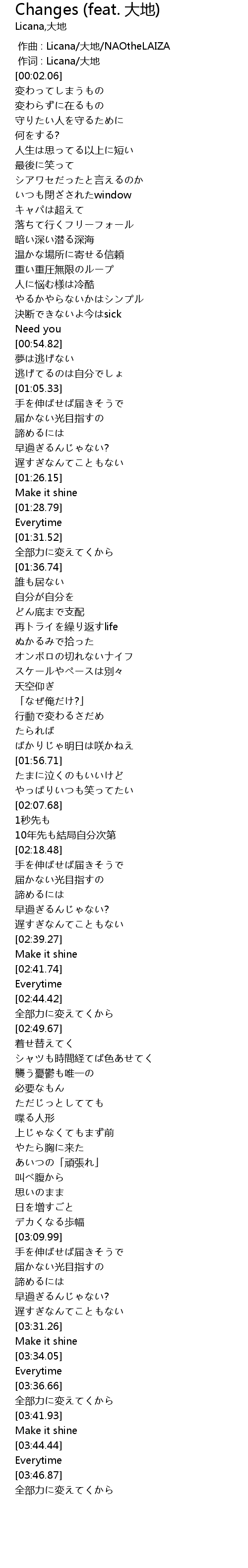 | [00:00.00] | 作曲 : Licana/大地/NAOtheLAIZA |