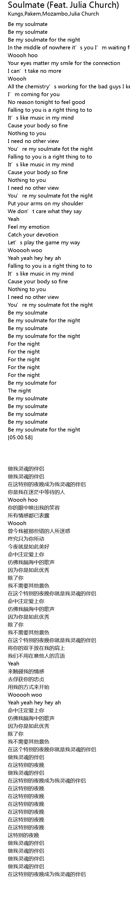 | [00:49.81] | Be my soulmate |