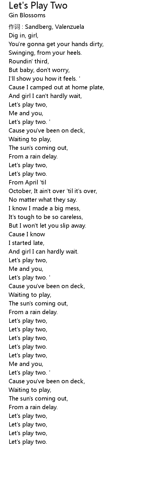 | Let's play two. ' | |